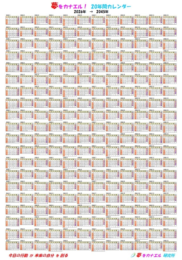 夢をカナエル!20年間カレンダー ※メルマガ読者特典