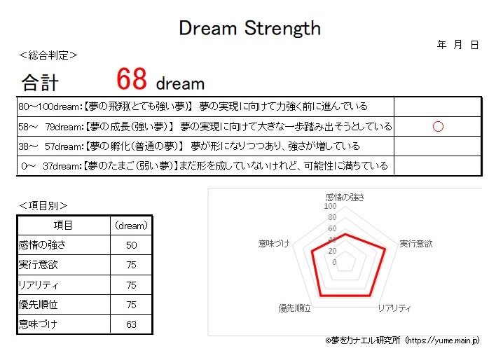 夢の強さを測定する「Dream Strength 測定ツール(β版)」を用意しました。